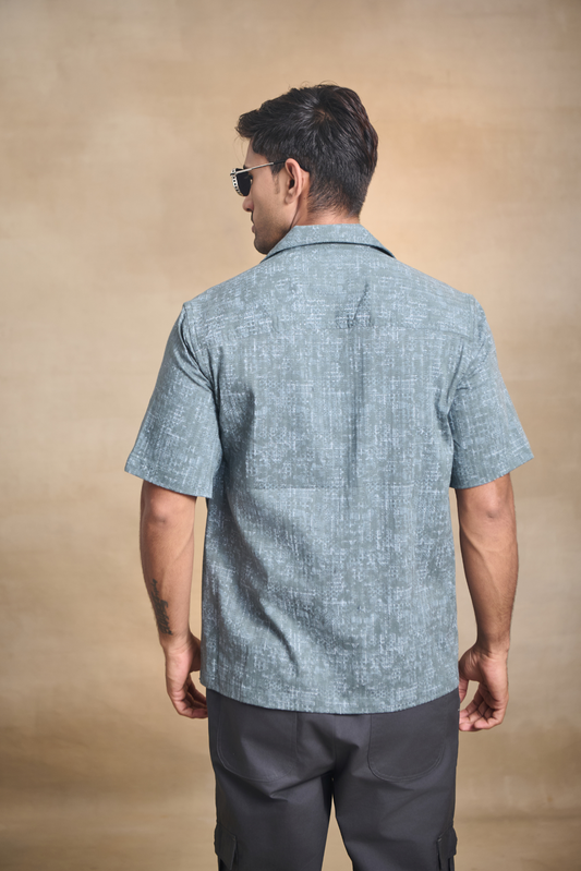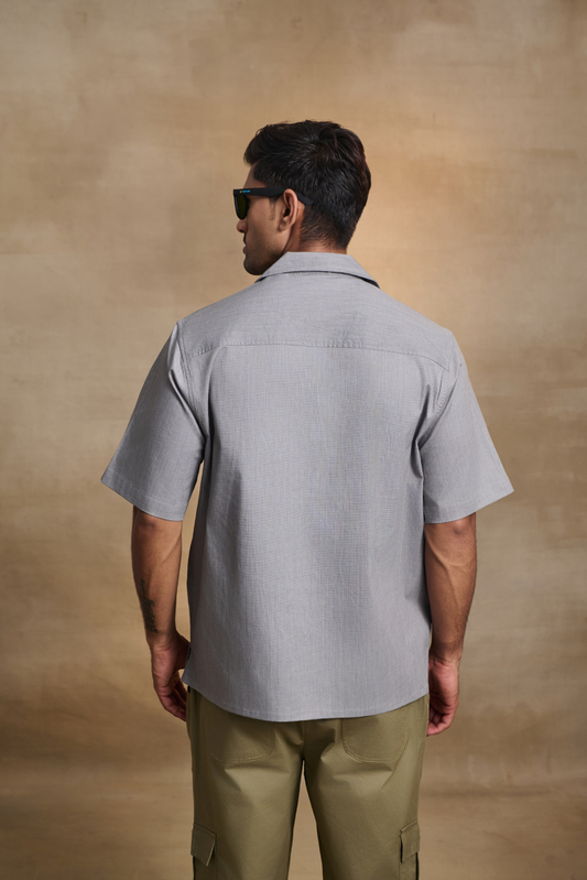 Cuban Collar Oversize Half Sleeves Shirt - Grey