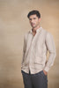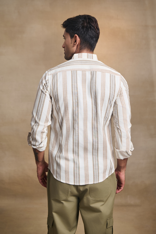 Light Stripe Linen Blend Chines Collar Full Sleeves Shirt - Brown