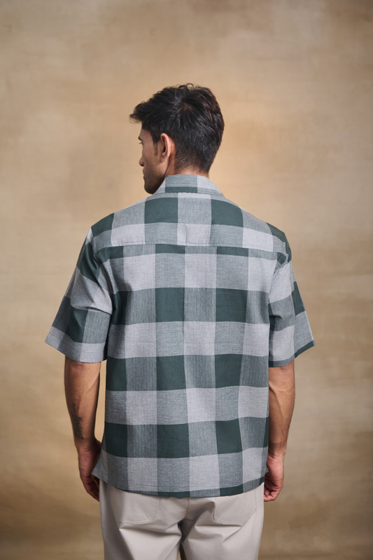 Cuban Collar Oversize Half Sleeves Shirt - Green