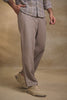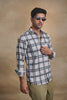 Light Check Linen Blend Chines Collar Full Sleeves Shirt - Brown