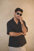 Cuban Collar Oversize Half Sleeves Shirt - Black
