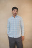 Light Check Linen Blend Chines Collar Full Sleeves Shirt - Blue
