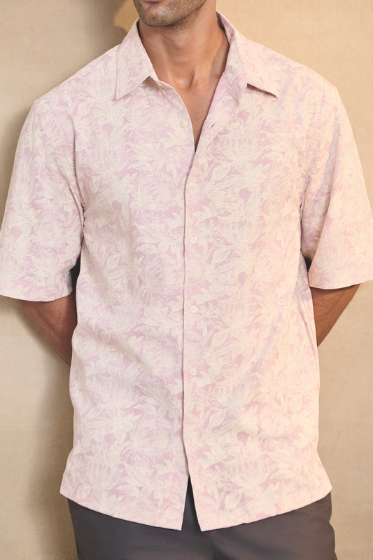 Half Sleeves Printed Classic Collar Oversize Shirt - Pink