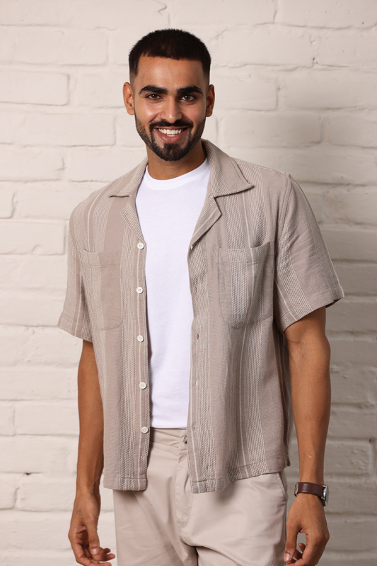 50% OFFBoxy Cuban Collar Shirt - Brown