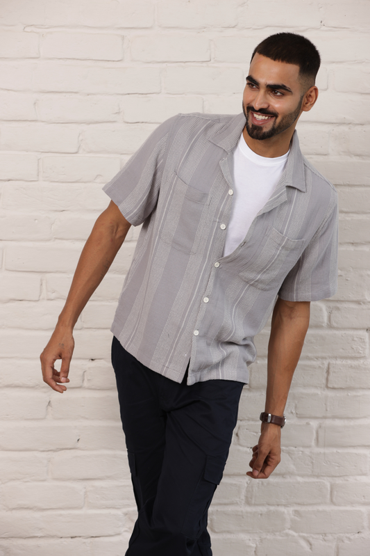 50% OFFBoxy Cuban Collar Shirt - Grey