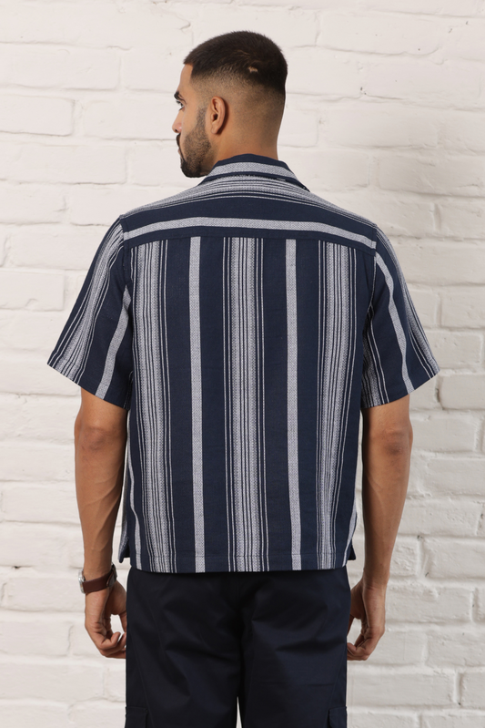 50% OFFBoxy Cuban Collar Shirt - Blue