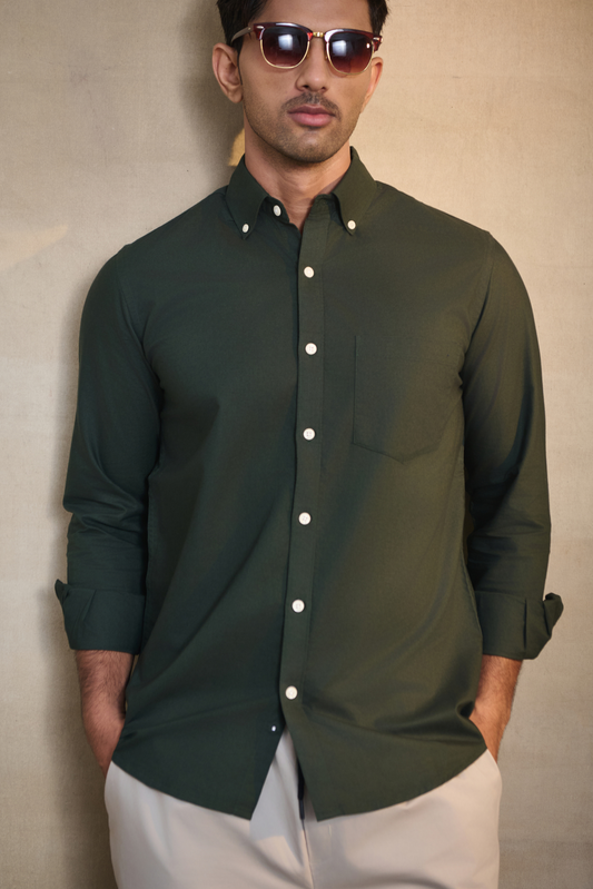 Premium Oxford Solid Shirt - Bottle Green