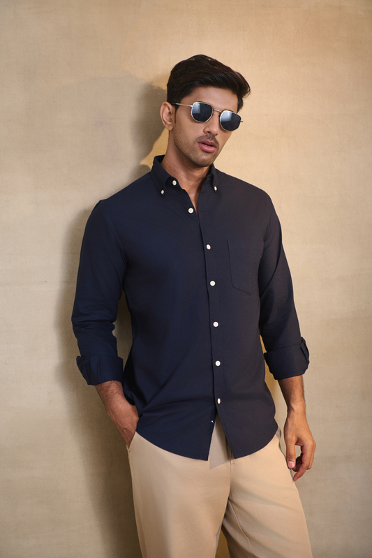 Premium Oxford Solid Shirt - Navy Blue