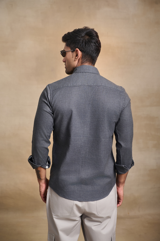 Premium Solid Melange Button Down Shirt - Dark Grey