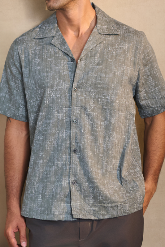Half Sleeves Printed Cuban Collar Oversize Shirt - Green