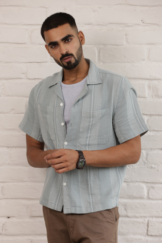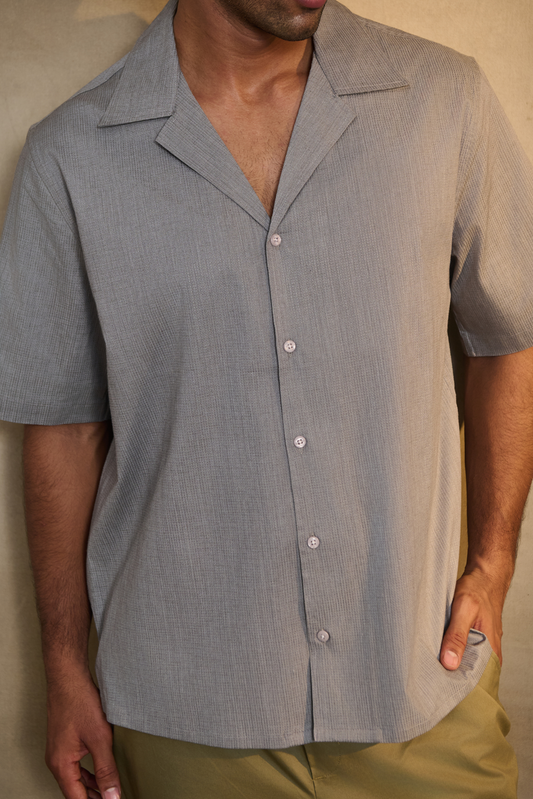 Cuban Collar Oversize Half Sleeves Shirt - Grey