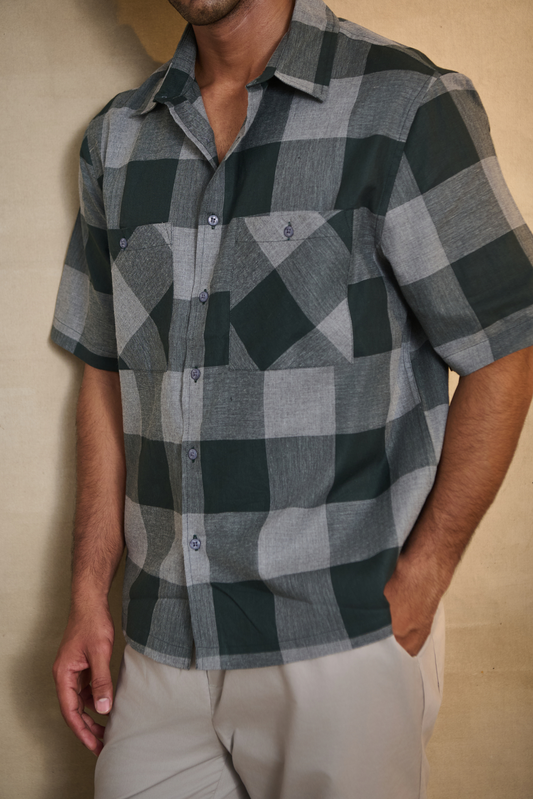 Oxford Check Shirt with 1 Patch Pocket - Dark Green
