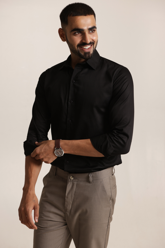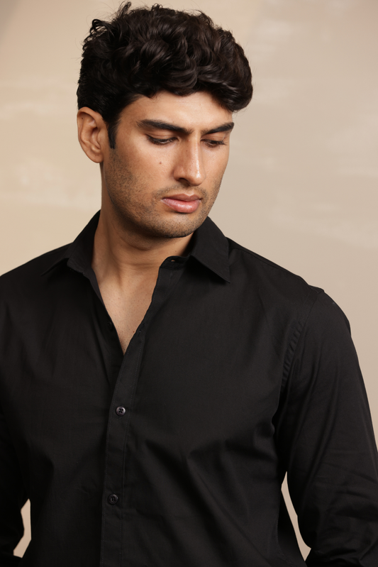 Essential Plain Premium Cotton Shirt - Black