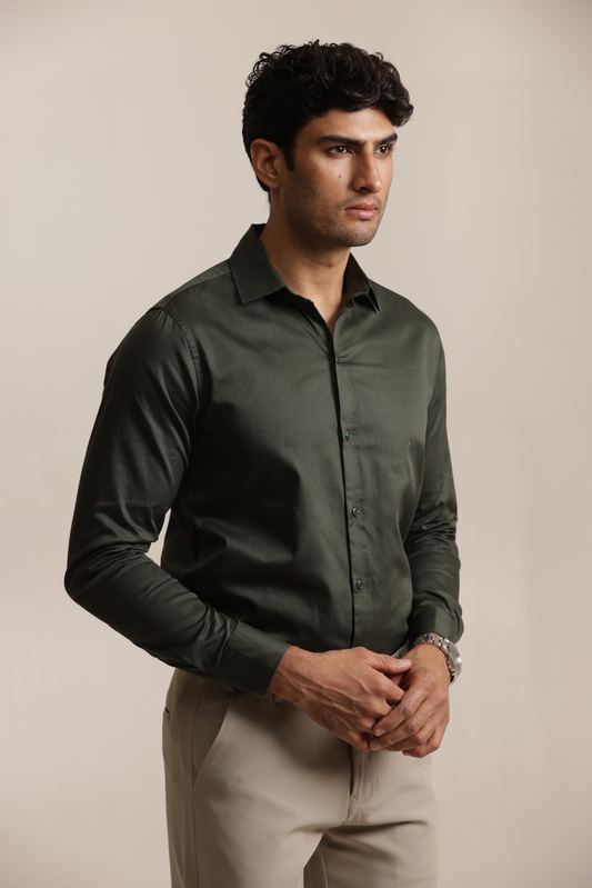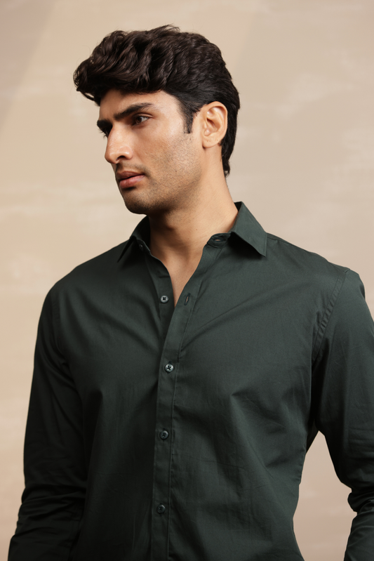 Essential Plain Premium Cotton Shirt - Bottle Green