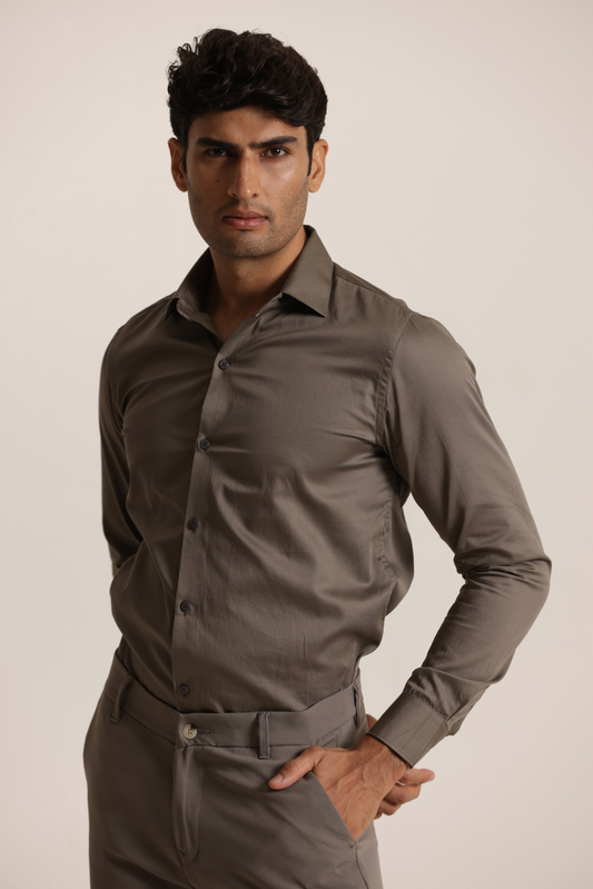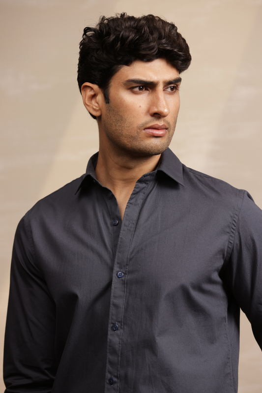 Essential Plain Premium Cotton Shirt - Grey