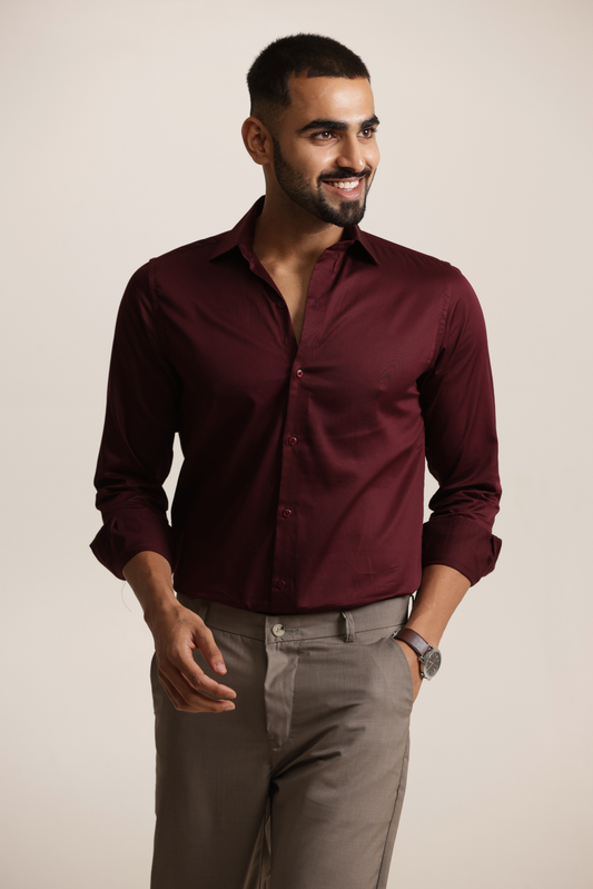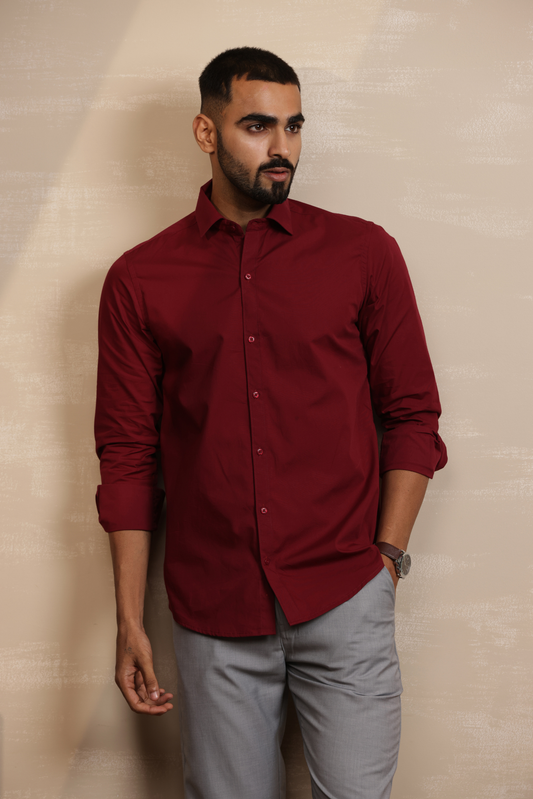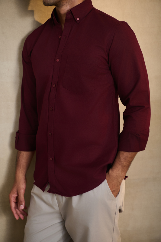 Essential Plain Premium Cotton Shirt - Maroon