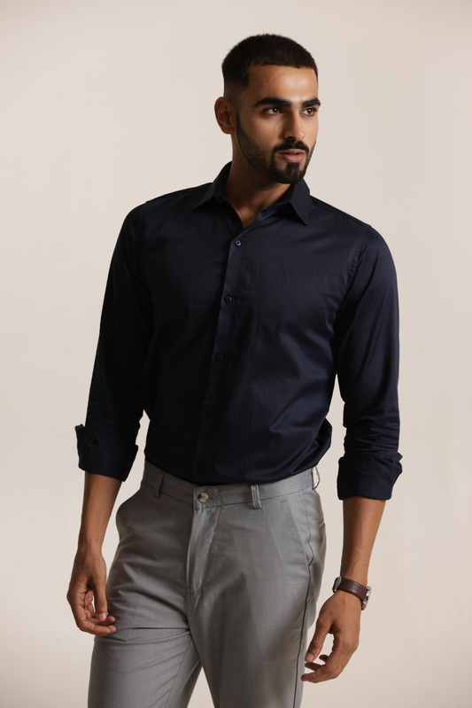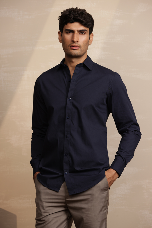 Essential Plain Premium Cotton Shirt - Navy Blue