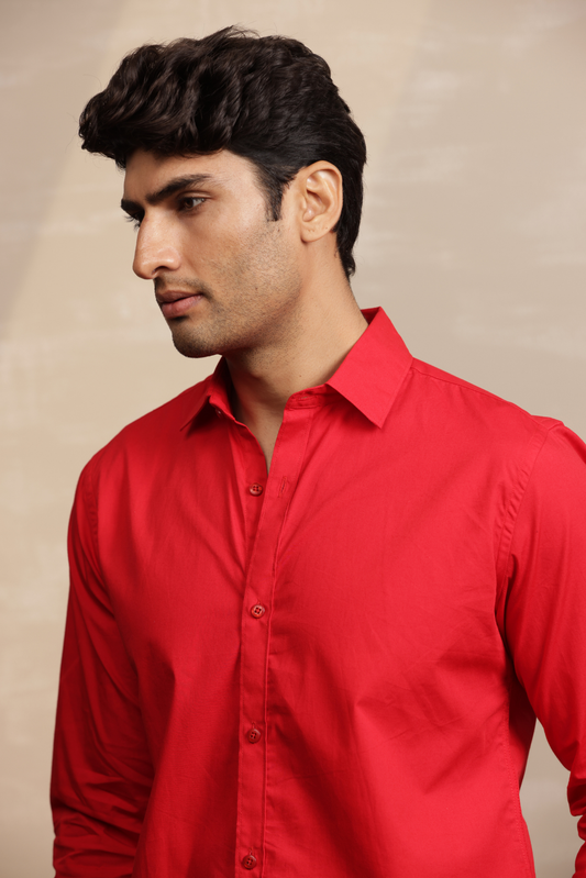 Essential Plain Premium Cotton Shirt - Red