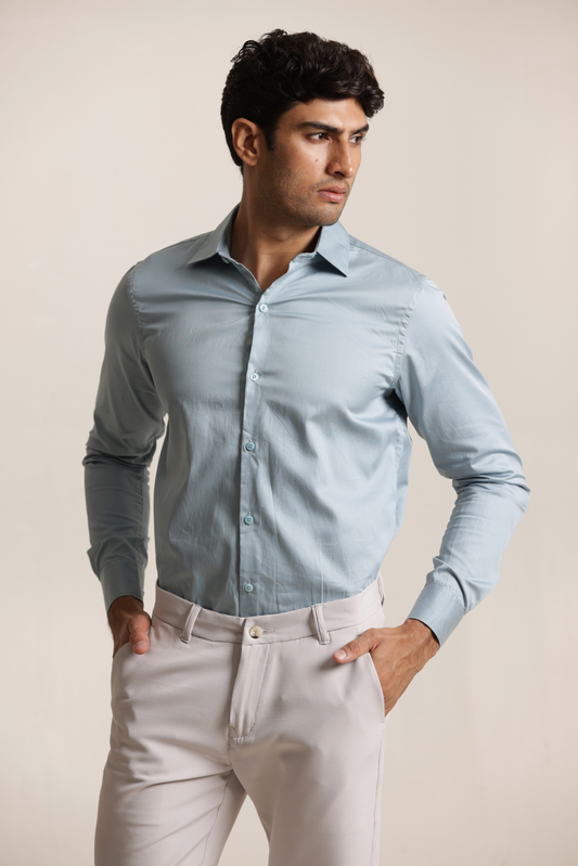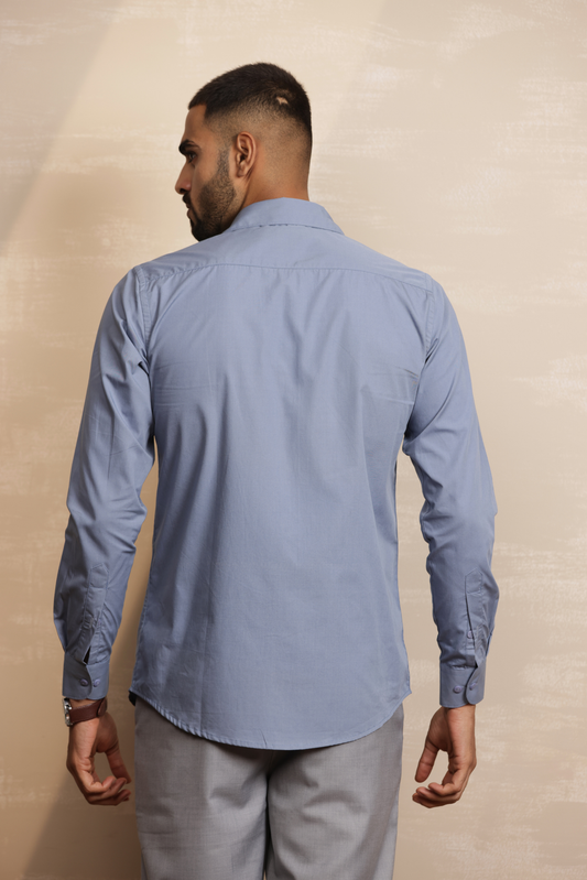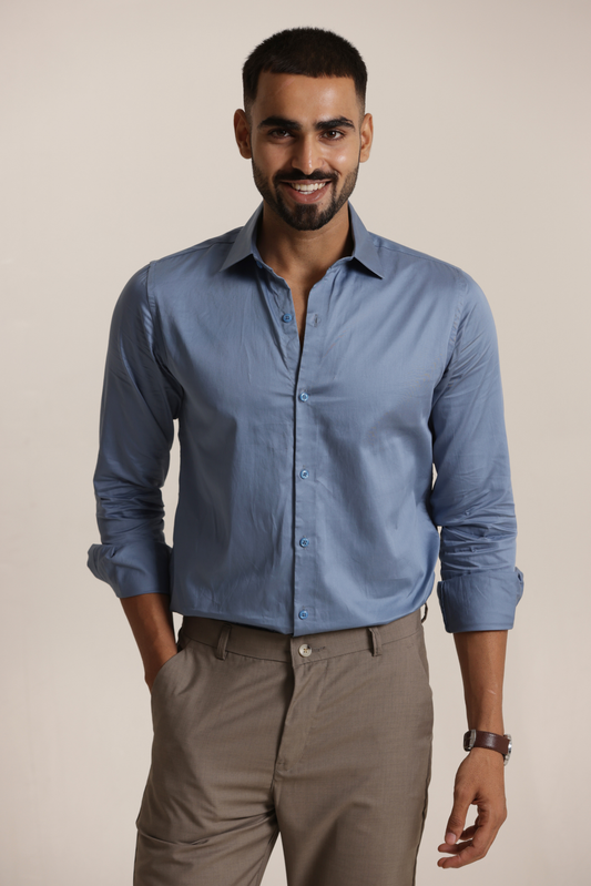 Essential Plain Premium Cotton Shirt - Stone Blue