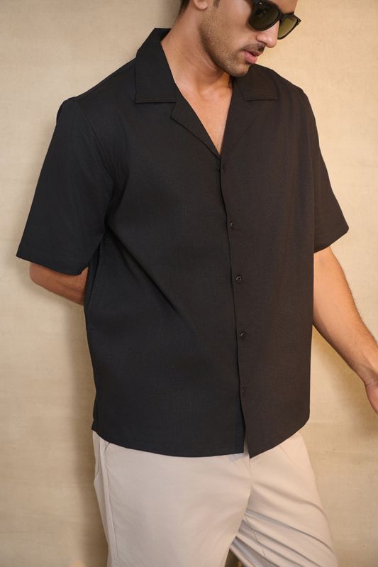 Cuban Collar Oversize Half Sleeves Shirt - Black