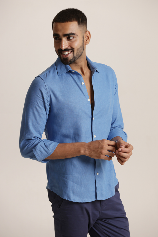 Essential Linen Cotton Blend Shirt - Blue