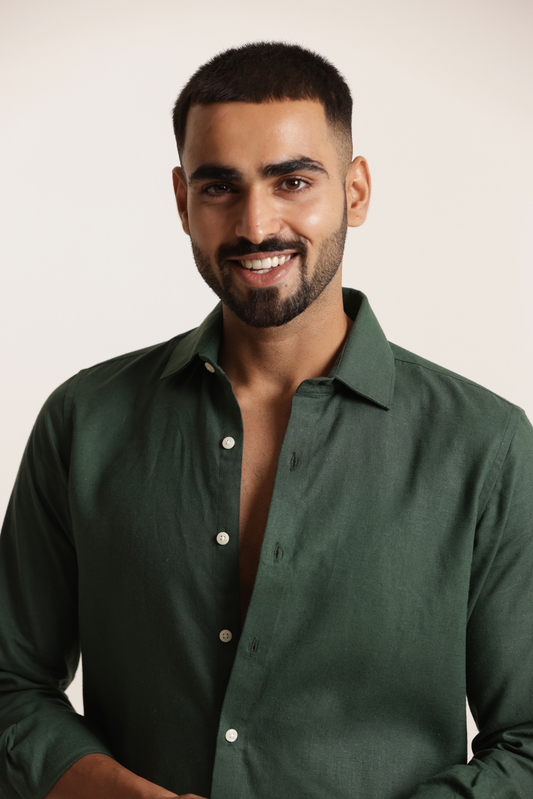 Essential Linen Cotton Blend Shirt - Bottle Green