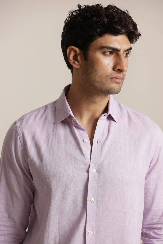 Essential Linen Cotton Blend Shirt - Light Purple