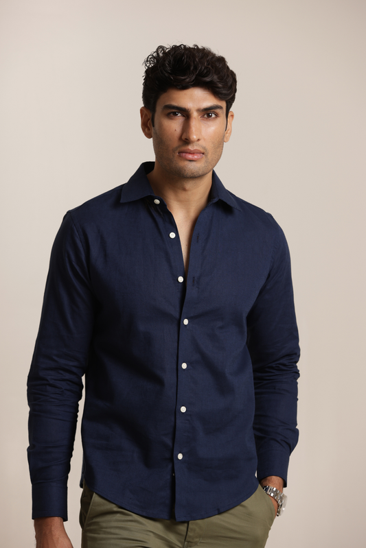 Essential Linen Cotton Blend Shirt - Navy Blue