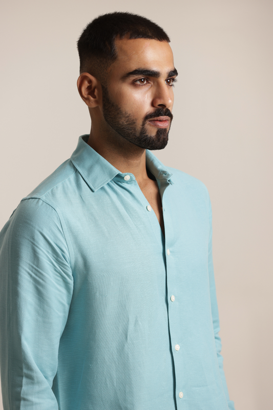 Essential Linen Cotton Blend Shirt - Teal
