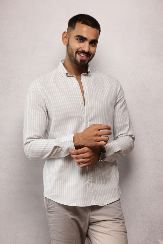 Button Down Oxford Striped Shirt - Grey