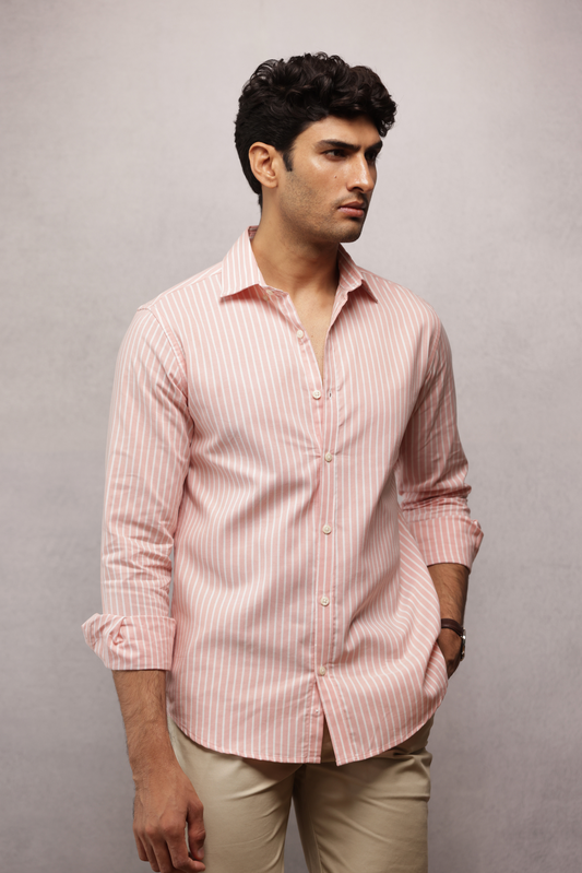 Button Down Oxford Striped Shirt - Peach