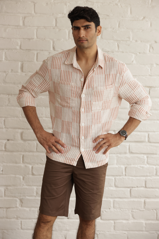 Premium Digital Blaze Natural Classic Full Sleeves Shirt - Peach