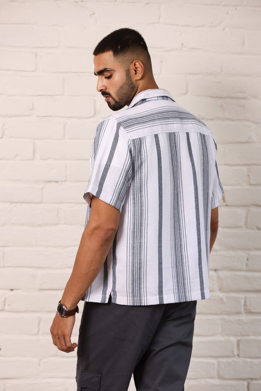 Cuban Collar Oversize Half Sleeves Shirt - White